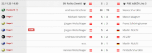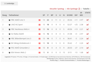 Gestern spielten wird das Saisonfinale auf “neutralem Boden” in Wels. Da wir nur zu dritt anreisten und ein Spiel fix abgeben mussten, war die Erwartungshaltung gegen den Tabellenführer eher gering. Doch wir sollten uns täuschen. Drei Hill:Hill-Partien gehen an uns und somit fällt das Ergebnis “eindeutig” mit 5:2 für uns aus😄Somit belegen wir punktegleich mit…